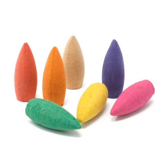Indulge your senses with our Long Backflow Incense Cones in assorted fragrances. Enjoy the calming scents of rose, lily, jasmine, lavender, green tea, sandalwood, and patchouli. Perfect for relaxation.